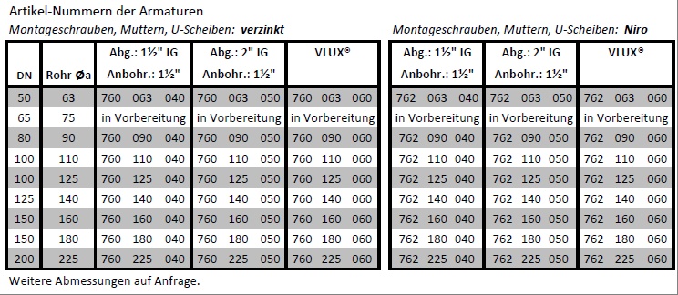 • für Wasser PN 10 bi DN 200, PN 16 bis DN 150